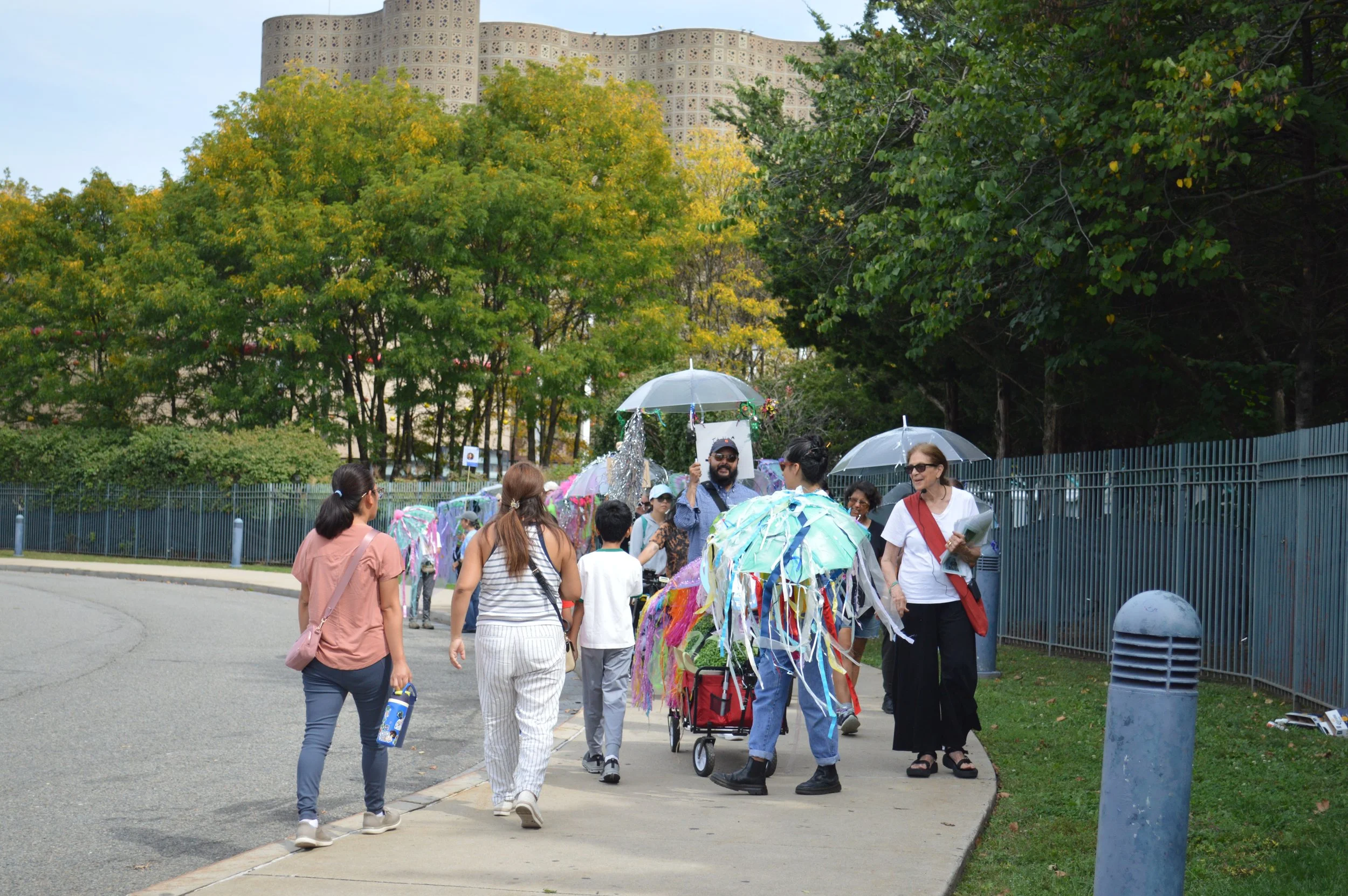 CALL joined Guardians of Flushing Bay at their annual end-of-season celebration, SaturBAY, last Saturday, September 27th! The walking tour, led by artist and Corona organizer Niceli Portugal, educated participants about the rising phenomenon of cloudbursts and flooding in Corona, Queens. Along the way, Amy Motzny, Director of Integrated Water Management at the NYC Department of Environmental Protection, shared insights into the infrastructural planning underway to help mitigate the flooding. At each stop, participants created art and sent messages to water that were read upon arrival at Flushing Bay.