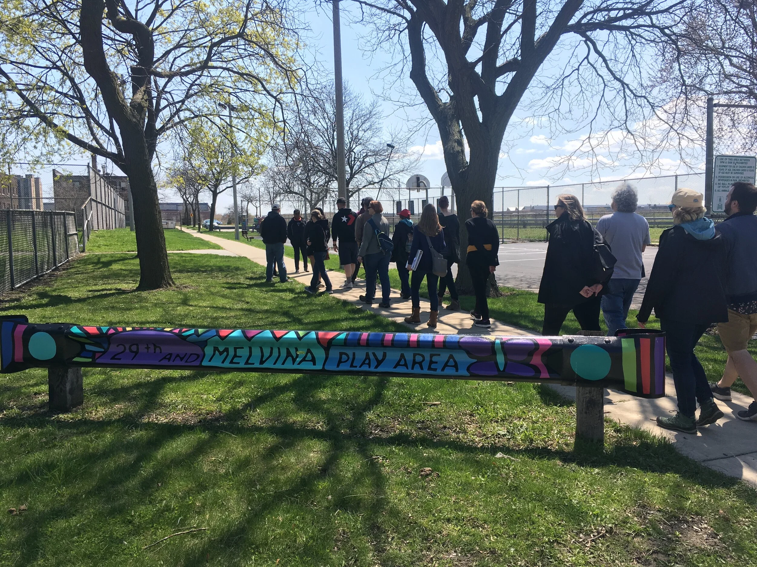 Artist Portia Cobb & environmental engineer Tory Kress lead a walk engaging the public in envisioning the future of Milwaukee’s 30th Street Corridor. Formerly the industrial powerhouse of City, many the manufacturing jobs have since left, leaving economic hardship and vacant land in this area.